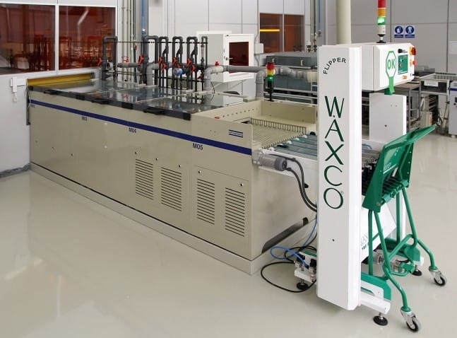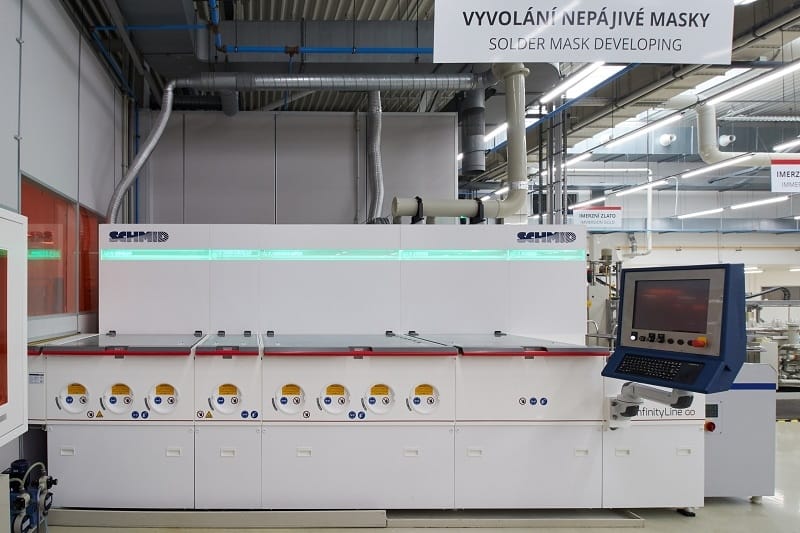 Matusewitz MECetch line – this process replaces the brushing process in some areas. Matusewitz MECetch line – this process replaces the brushing process in some areas. It brings far greater copper roughness and therefore it´s bigger surface. This treatment is suitable for application with dry resist, solder mask even for finishes pre-treatment. This technology is used also for copper surface treatment for flexi PCBs thanks to its minimal mechanical stress. Modern line software enables flexible program setting and simultaneously controls the automatic dosing based on continuous copper measurement.