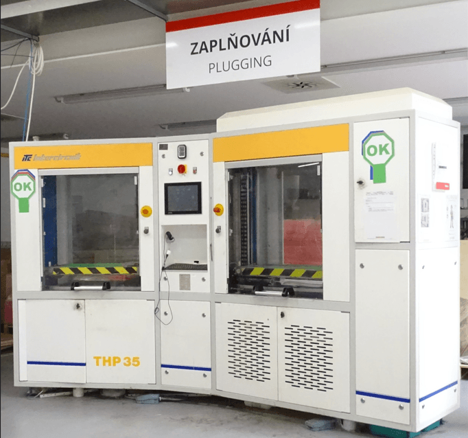For filling holes, we utilize technology from I.T.C., which can fill blind vias using two heads. We fill the boards according to IPC 4761, type VII. The holes are plated with copper and finished with a final surface treatment. This technology allows for via-in-pad.
