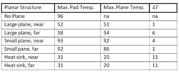 Thermal vias must connect the pad to somewhere. This “somewhere” is usually a copper layer located in the stack-up beneath the copper pad. The underlying layer itself reduces the temperature of the copper pad. It is important to recognize which factors more significantly influence the pad's temperature: the thermal via or the underlying copper layer.